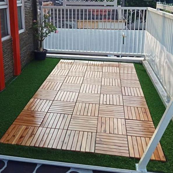 Variasi lantai balkon rooftop rumah, carport, taman outdoor, dan garasi (part 1). Namun, pemilihannya harus tepat, sebab penggunaannya di luar ruangan menyebabkan elemen ini terpapar langsung oleh perubahan cuaca. Penggunaannya membuat halaman atau taman rumah menjadi lebih stylish dan indah. Kayu ulin untuk lantai outdoor. Tidak hanya pemasangan lantai kayu indoor, kami juga bisa memasang lantai kayu untuk outdoor seperti keperluan rooftop, samping kolam renang dan pagar.